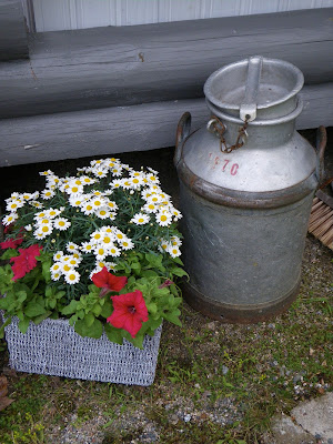 Kirppistely on kuulunut kesään.Mökkipaikkakunnan kirpparilta löytyi oranssi kattila ja sininen pannu kesäkukille.